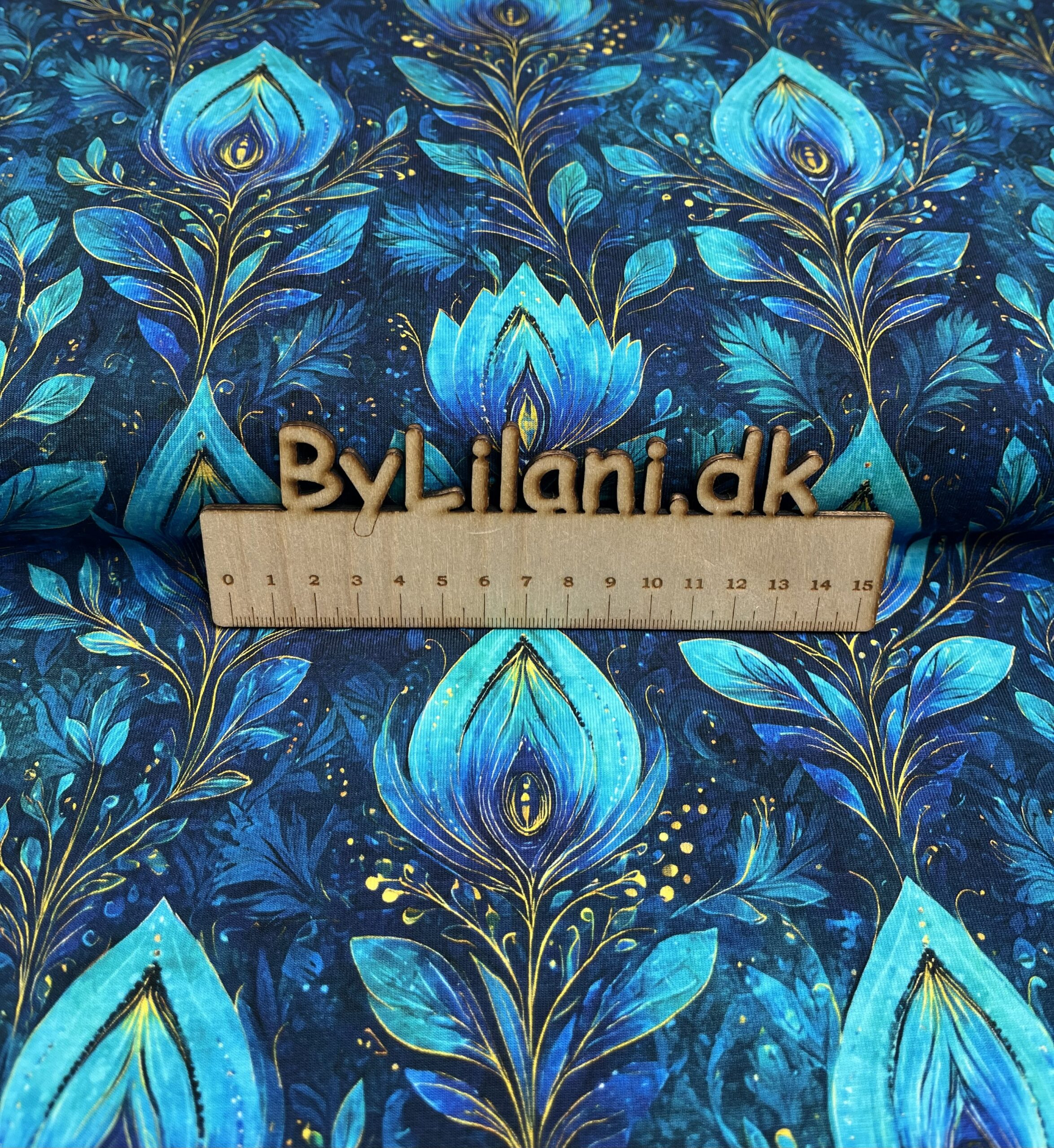 Jersey digital print – Panel – Turkis med blomstermark