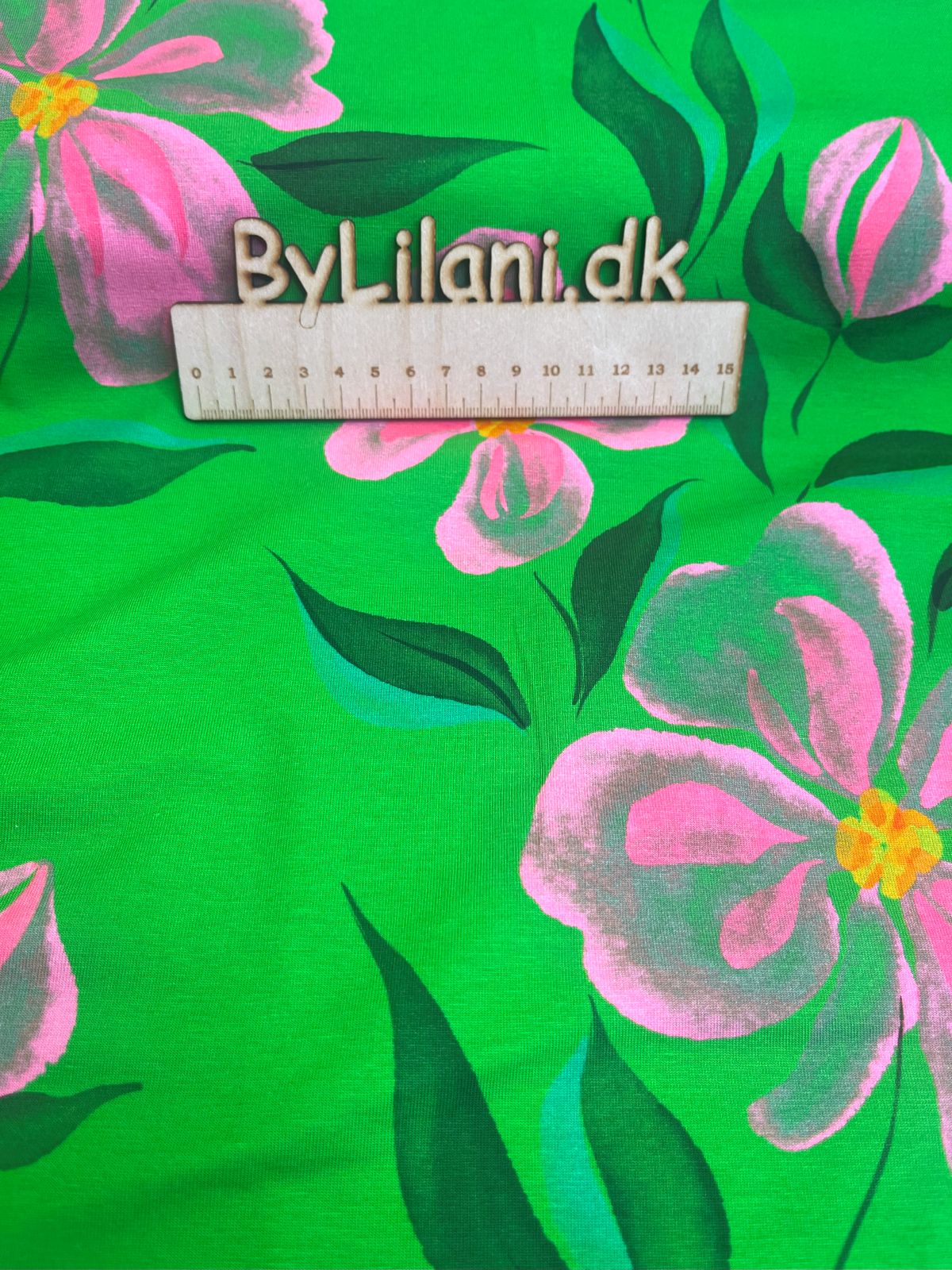 Jersey – Print – Grøn med pink blomst