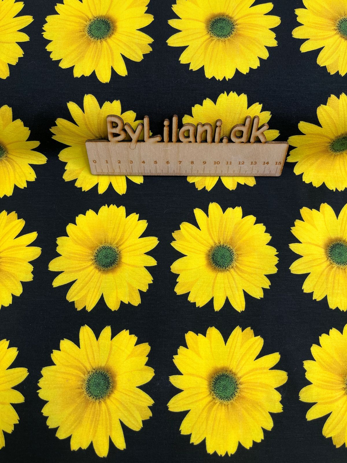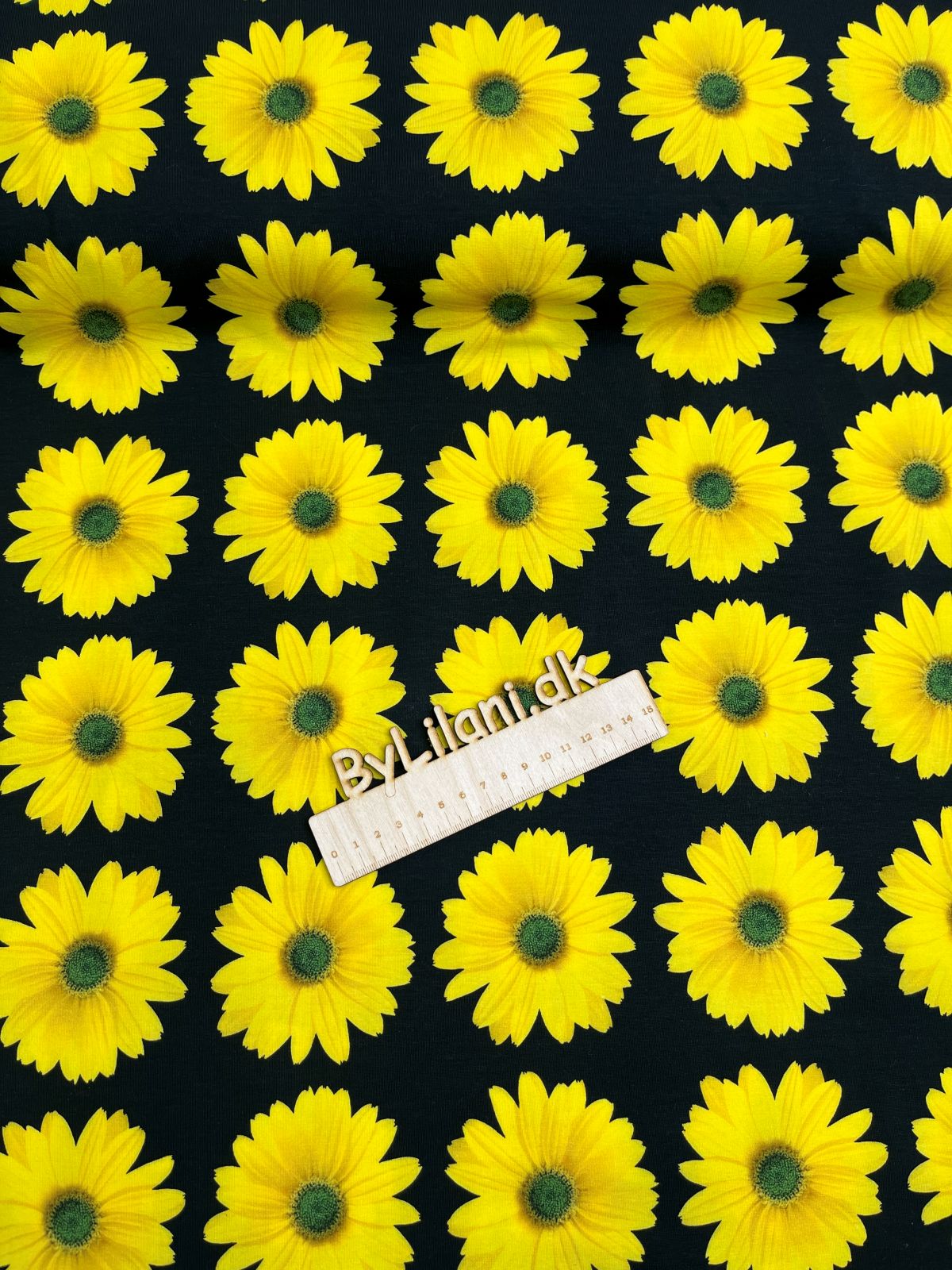 Jersey – Print – Gul blomst på sort baggrund